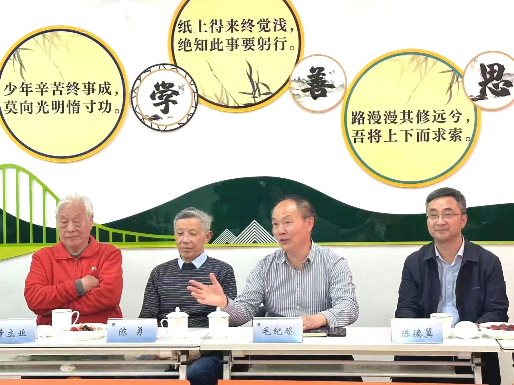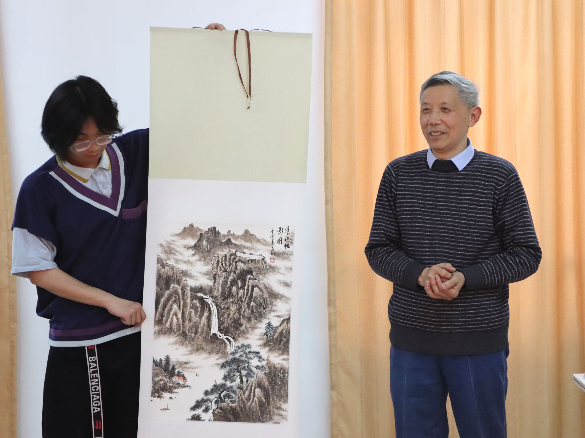 陈勇首先和师生们分享了研习国画的心得体会,并结合自己近期的三幅习作讲述了中国画的风格特点和基本技法要求。他认为,中国书画是中华民族传统文化的艺术瑰宝,代表了中华民族的文化精神和价值追求。中国画写意留白,虚实相生,既有诗情画意、空灵神韵之美,更蕴含处世哲学和人生之道。