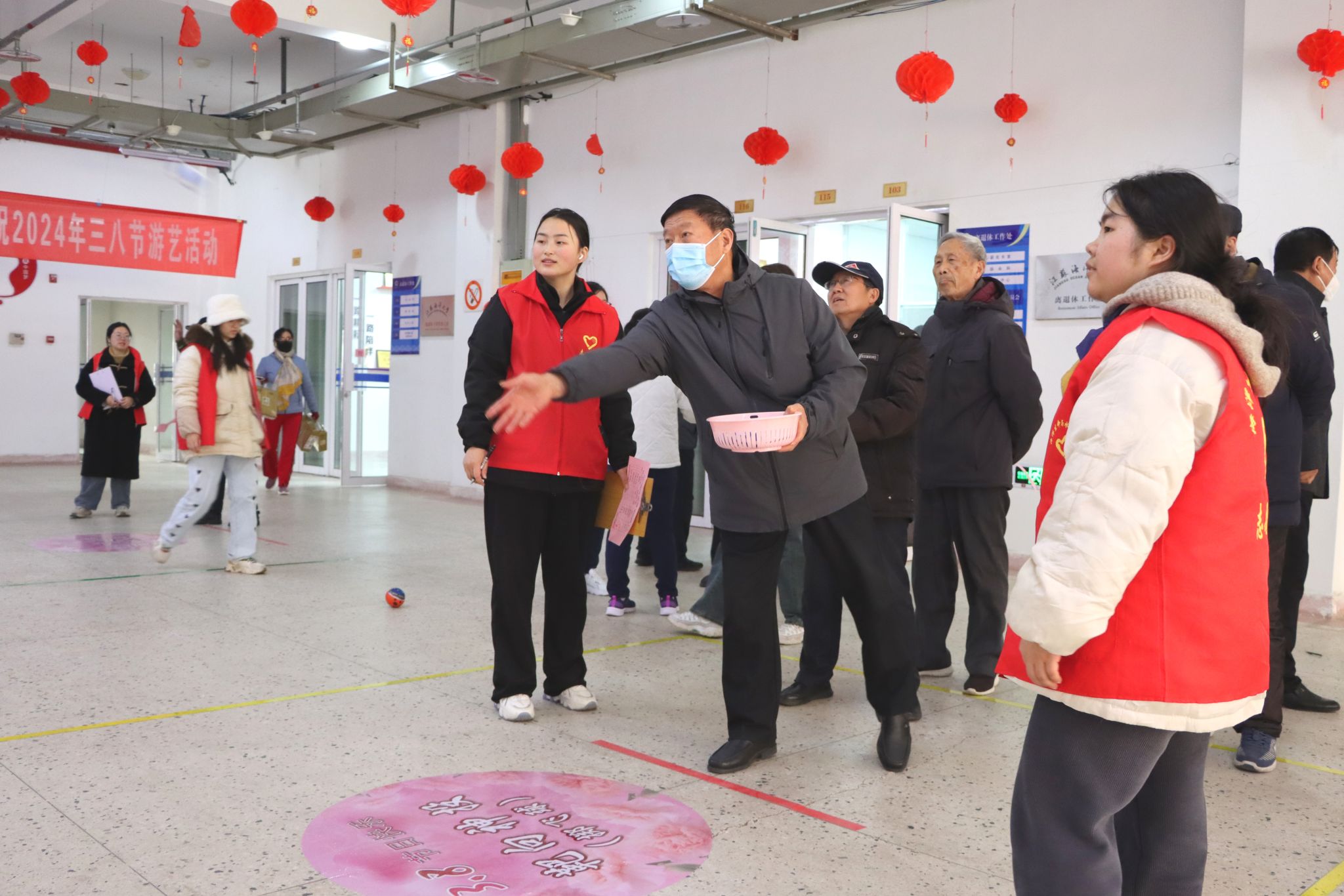 简单轻松的游戏规则,生动有趣的游戏过程,吸引了120余位离退休老同志前来参加。下午3点左右,在关工委联络员、学生志愿者的陪同和组织下,老同志们各自选择自己喜欢的项目有序参加。游戏过程中,大家精神焕发,尽情享受游戏的快乐,欢笑声、喝彩声汇成一片。活动现场,大家互致新春问候,祝福女教工节日快乐,气氛欢乐祥和。