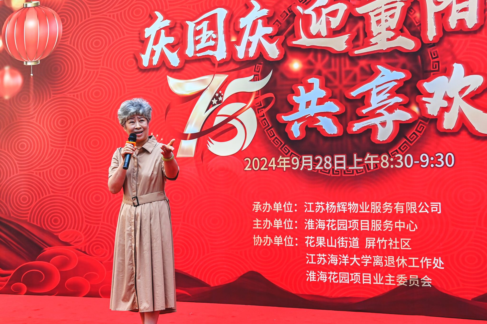演出开始前,校离退休党工委书记兼关工委秘书长钱汉珍发表了热情洋溢的致辞。她在讲话中指出,家是国的基础,有国才有家,国兴家才旺。希望通过举办本次文化活动,大家共同唱响新时代、讴歌新生活、共叙家国情和邻里情,并祝福伟大的祖国永远繁荣昌盛、国泰民安。同时她还表示,10月11日是我国的传统佳节——重阳节,关爱老人,孝老敬老,是中华民族的传统美德,为老年人安享幸福生活是全社会的重要责任。她提前向所有老同志致以节日的祝福,祝愿天下所有的老人快乐、幸福、安康!
