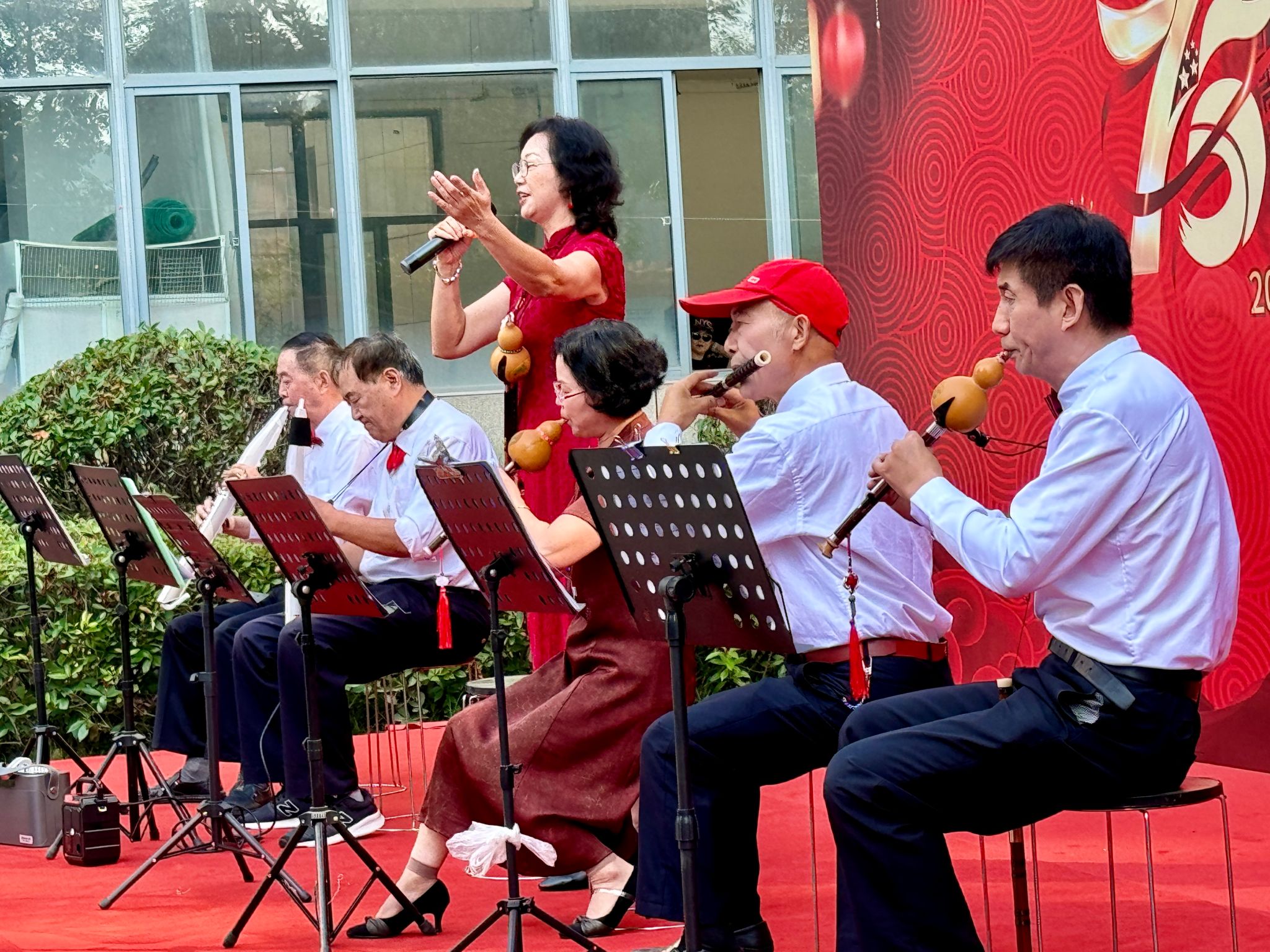 为庆祝中华人民共和国成立75周年,迎接我国第15个“敬老月”,共同欢度国庆和重阳佳节,9月28日上午,校关工委老年艺术团走进淮海花园小区,参加“庆国庆 迎重阳”社区文艺演出。