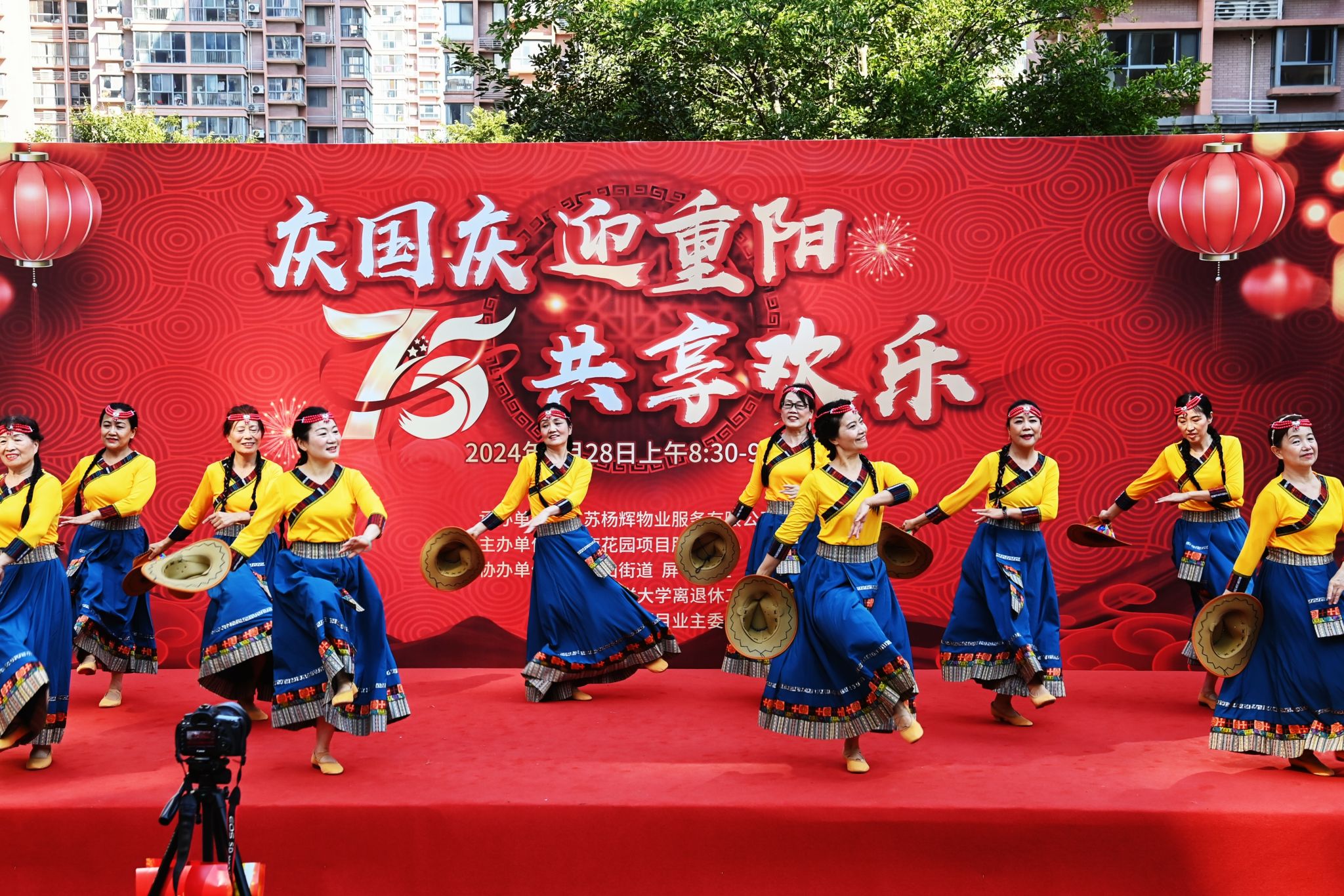 文艺演出中,我校退休老同志为社区居民表演了藏族舞蹈、器乐合奏、诗歌朗诵、小合唱、八段锦、时装秀、笛子联奏和独唱等9个节目,不仅展现了我校离退休老同志健康快乐的精神风貌,也是对青少年的一次爱国主义教育。演出赢得了现场观众的广泛好评,活动现场高潮迭起、掌声和叫好声不断。整场演出在我校退休职工芦士香优美的《五星红旗》歌声中结束,演出取得圆满成功。