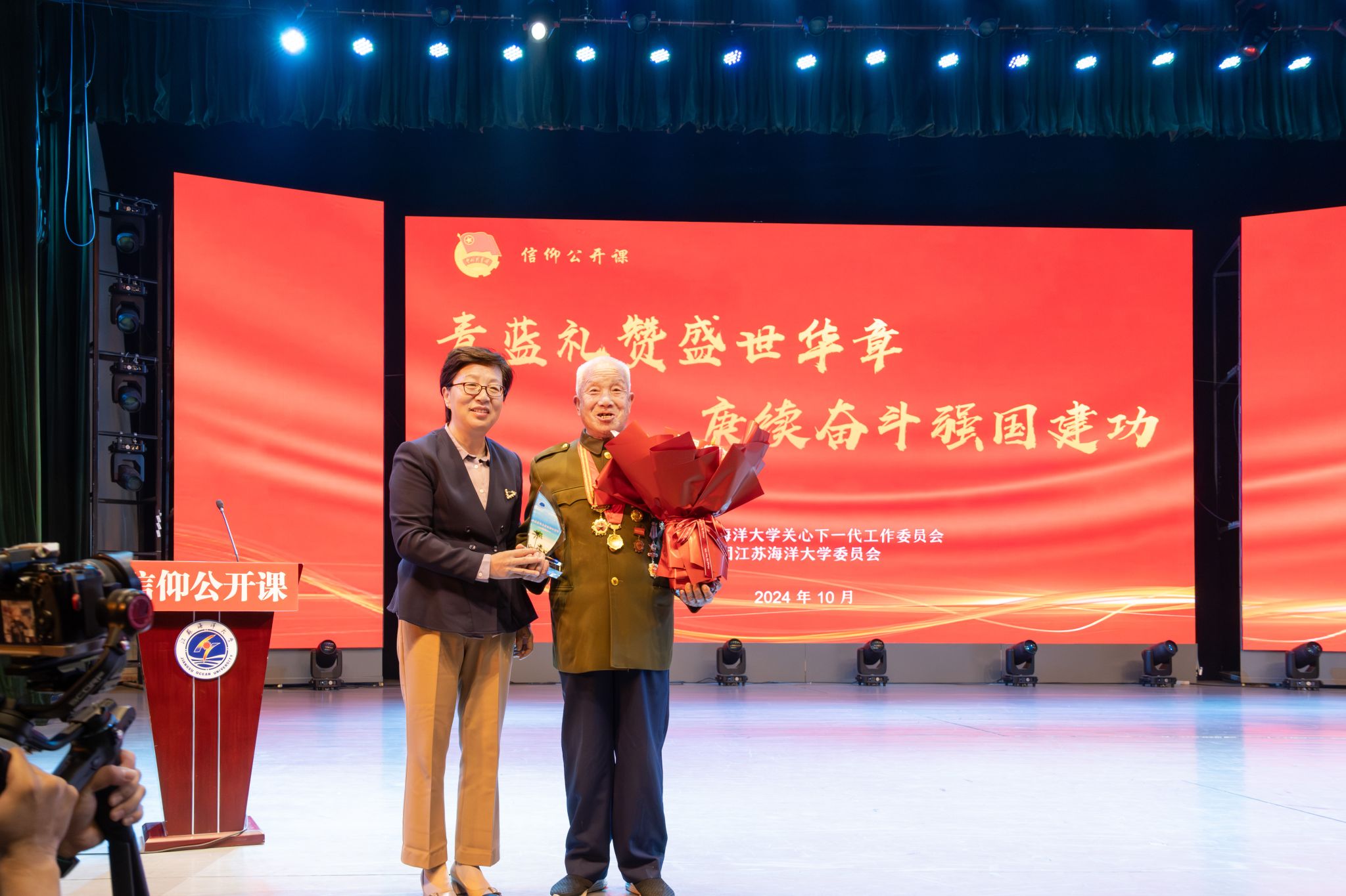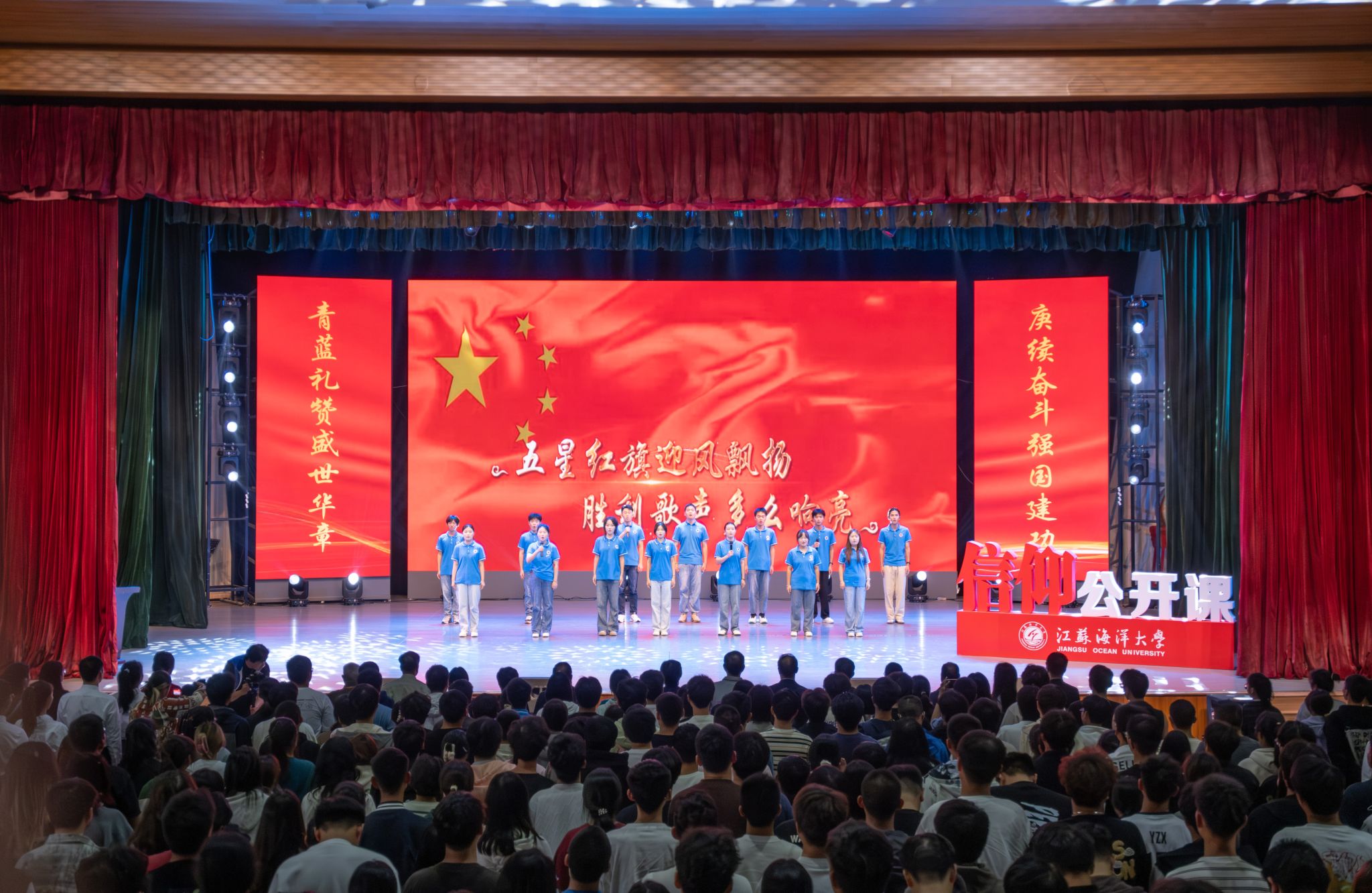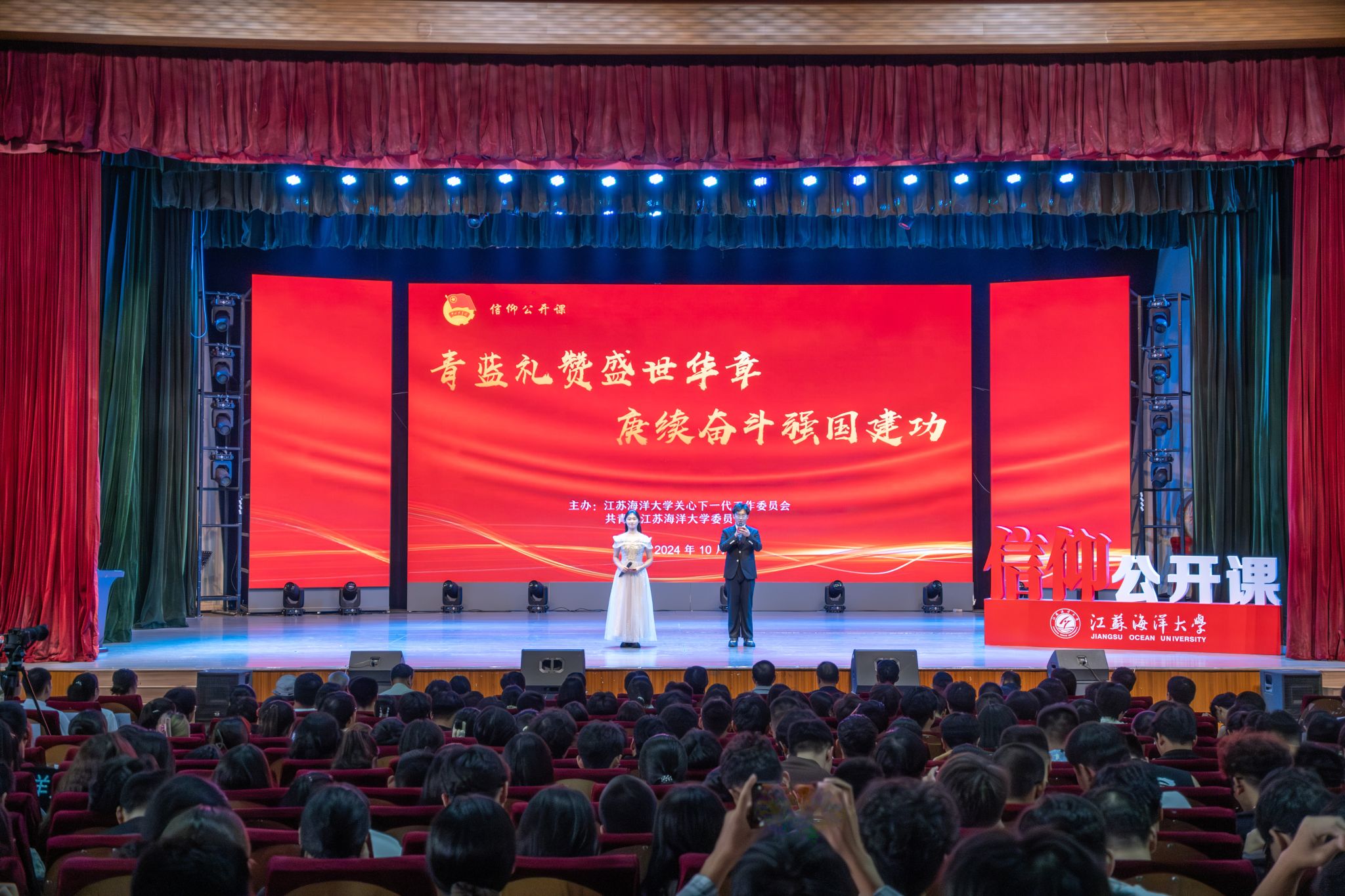 青蓝礼赞盛世华章,赓续奋斗强国建功。10月16日下午,苍梧校区大礼堂,由校关工委和团委精心策划的国庆专题信仰公开课在嘹亮的《歌唱祖国》声中拉开了帷幕。