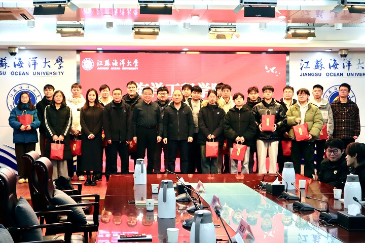 12月16日,江苏海洋大学关工委“海英草”工作坊老教师吴建新和学院党委书记兼关工委主任王改红、副书记兼关工委副主任魏学庆、关工委委员张三柱等慰问2025届考研学子,与考研学生的亲切交流。