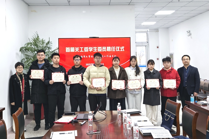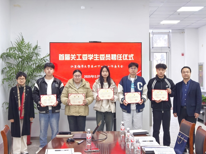 3月20日下午,我校关工委首届学生委员聘任仪式在筑海楼104会议室举行。离退休工作处处长兼关工委秘书长钱汉珍、校团委书记兼关工委副秘书长黄吉庆与会指导,离退休工作处副处长兼关工委副秘书长王祥义主持聘任仪式。