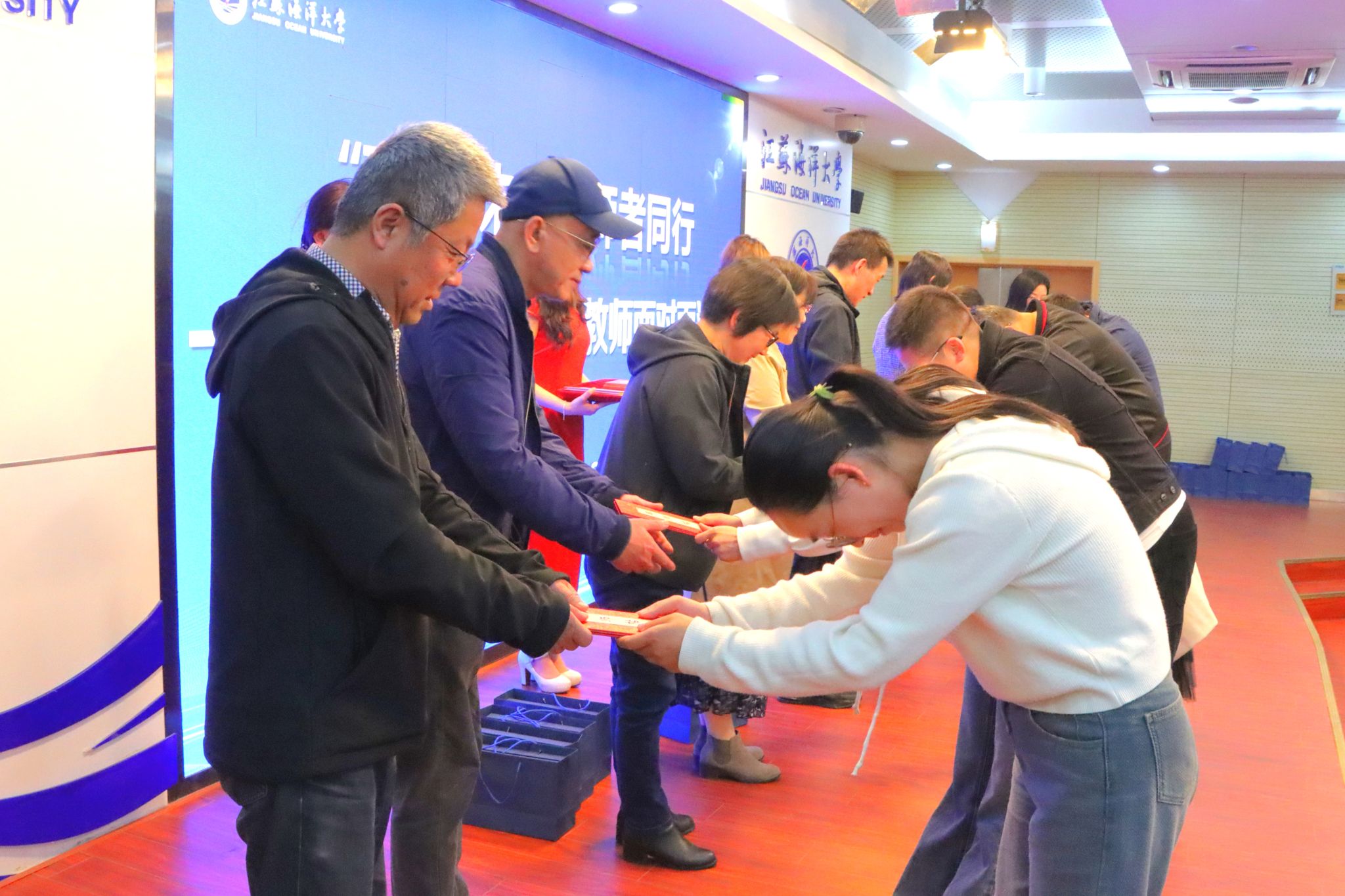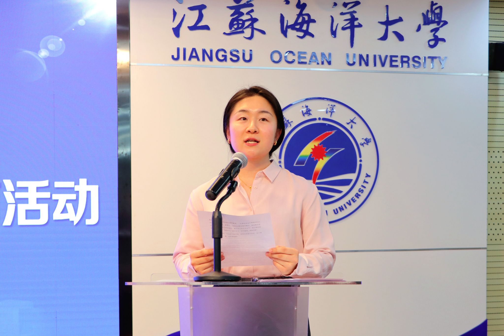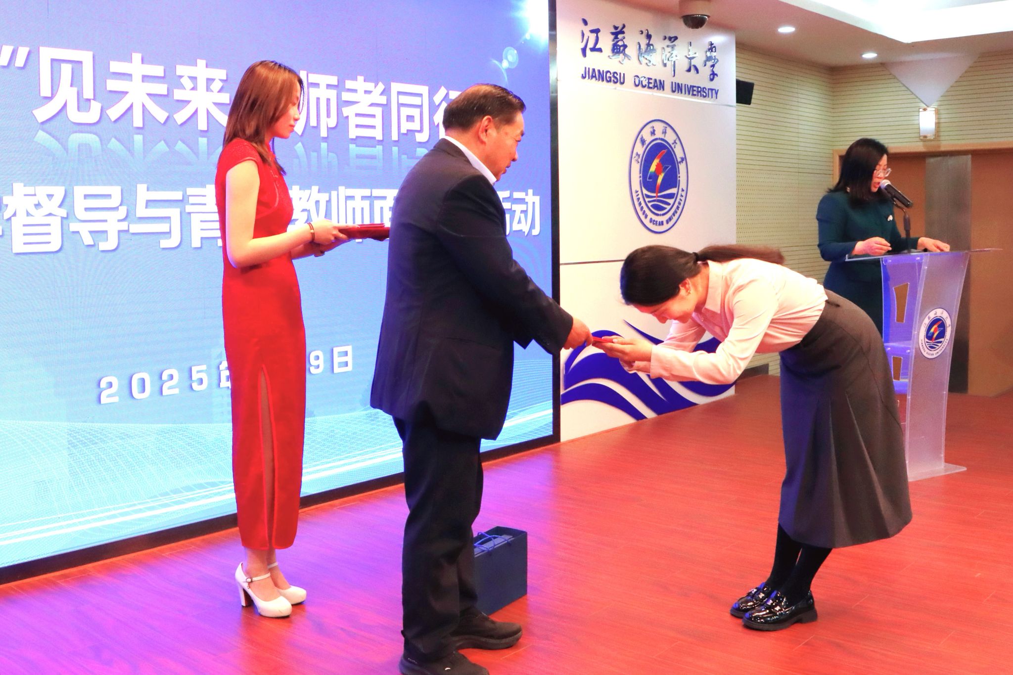 海洋技术与测绘学院教师张艺璇代表青年教师发言,表示要向前辈虚心请教,大胆创新实践,提升育人能力和水平,为学校发展和学生成长贡献力量。