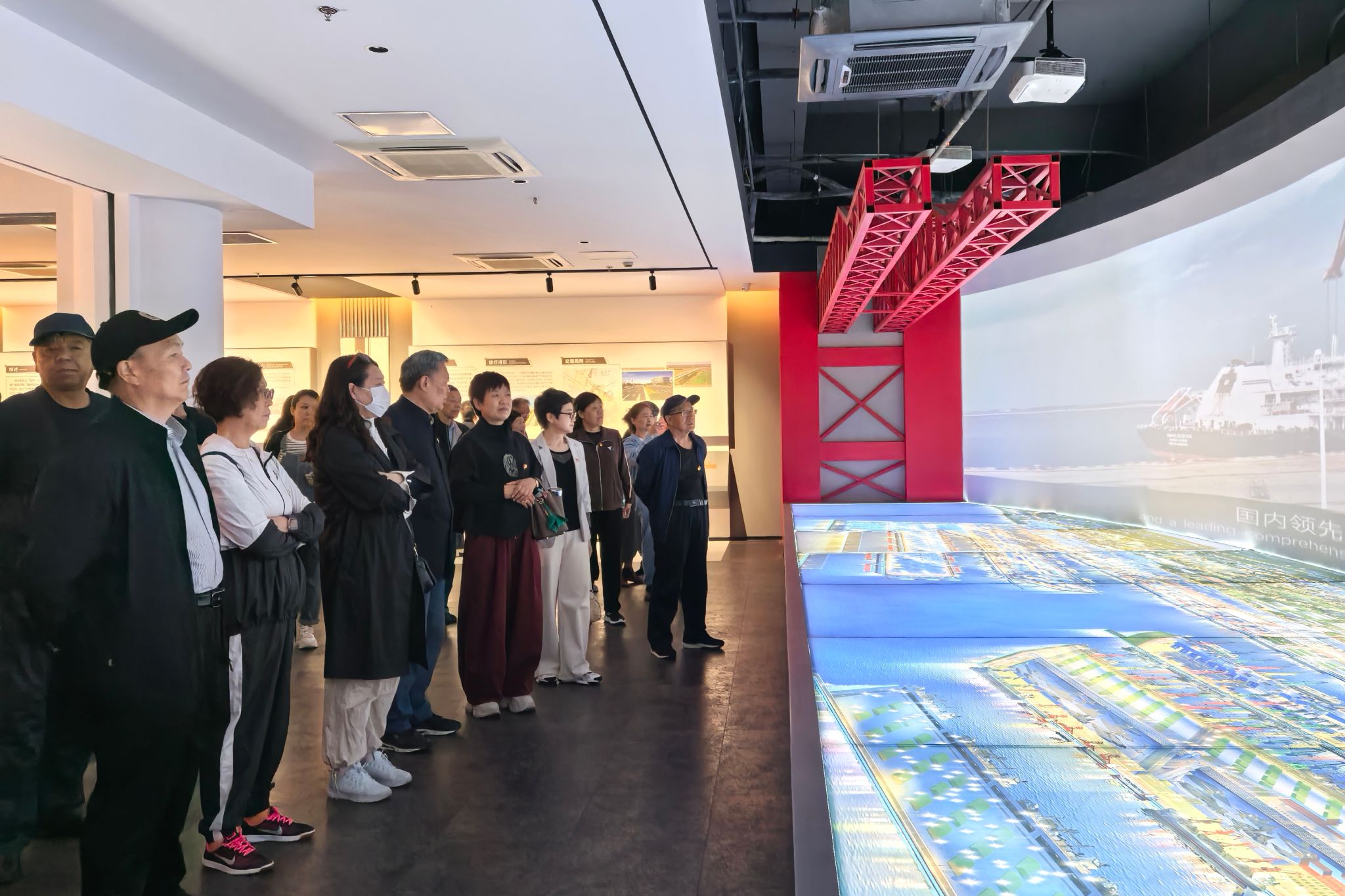 在连云港石化产业基地规划展示馆,大家通过智能科技实景模型和石化产品实物全面了解连云港石化产业基地的建设情况和发展蓝图。在徐圩港区,详细了解港区规划建设和应急保障情况。