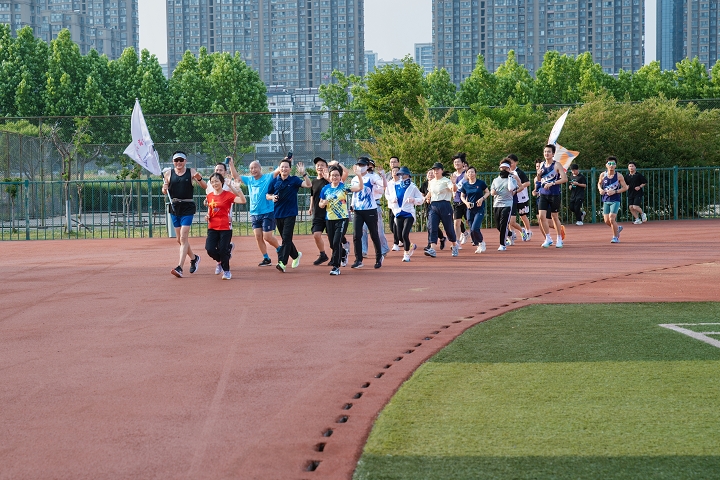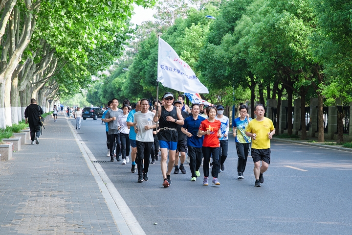 活动中,退休老同志和爱好跑步的师生一同环绕校园健康跑,用脚步丈量江海大校园,在蝉鸣与绿荫中尽情挥洒汗水,展现出蓬勃的运动热情与活力。活动以环校跑为纽带,增进了师生之间的交流互动,传递了健康运动的生活理念。