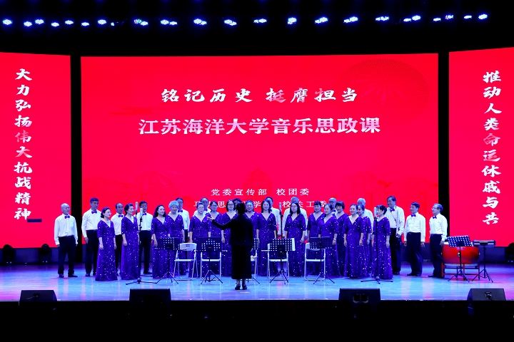 9月28日晚,在雄壮的国歌声中,校“铭记历史挺膺担当”音乐思政课在苍梧校区大礼堂拉开帷幕。离退休老教师与1300余名师生共上一堂音乐思政大课,让抗战历史和革命故事“声声入耳入心”。