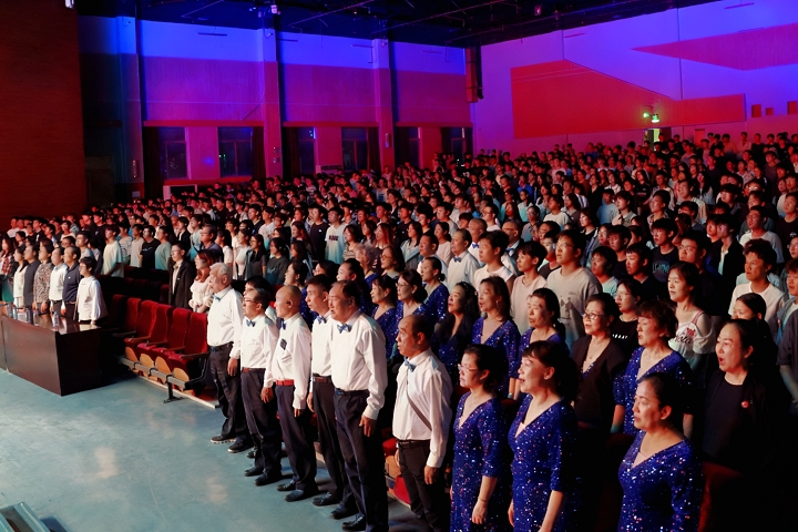 演职人员和学生1300余人合唱《国歌》