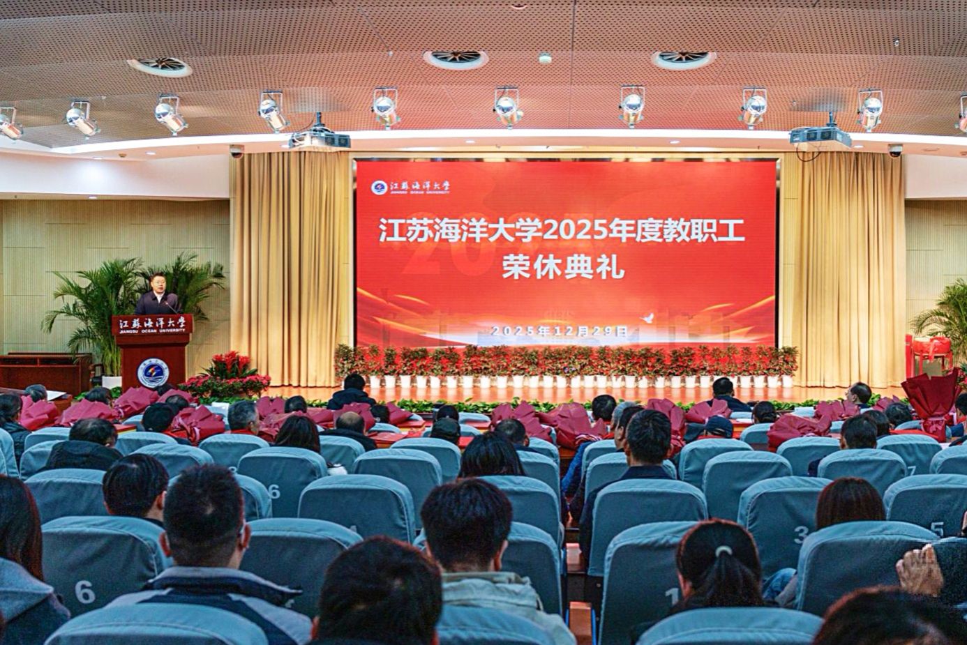 12月29日下午,江苏海洋大学2025年度教职工荣休典礼在黄海厅举行。校领导出席典礼,校党委副书记兼校关工委主任李梅英主持仪式。