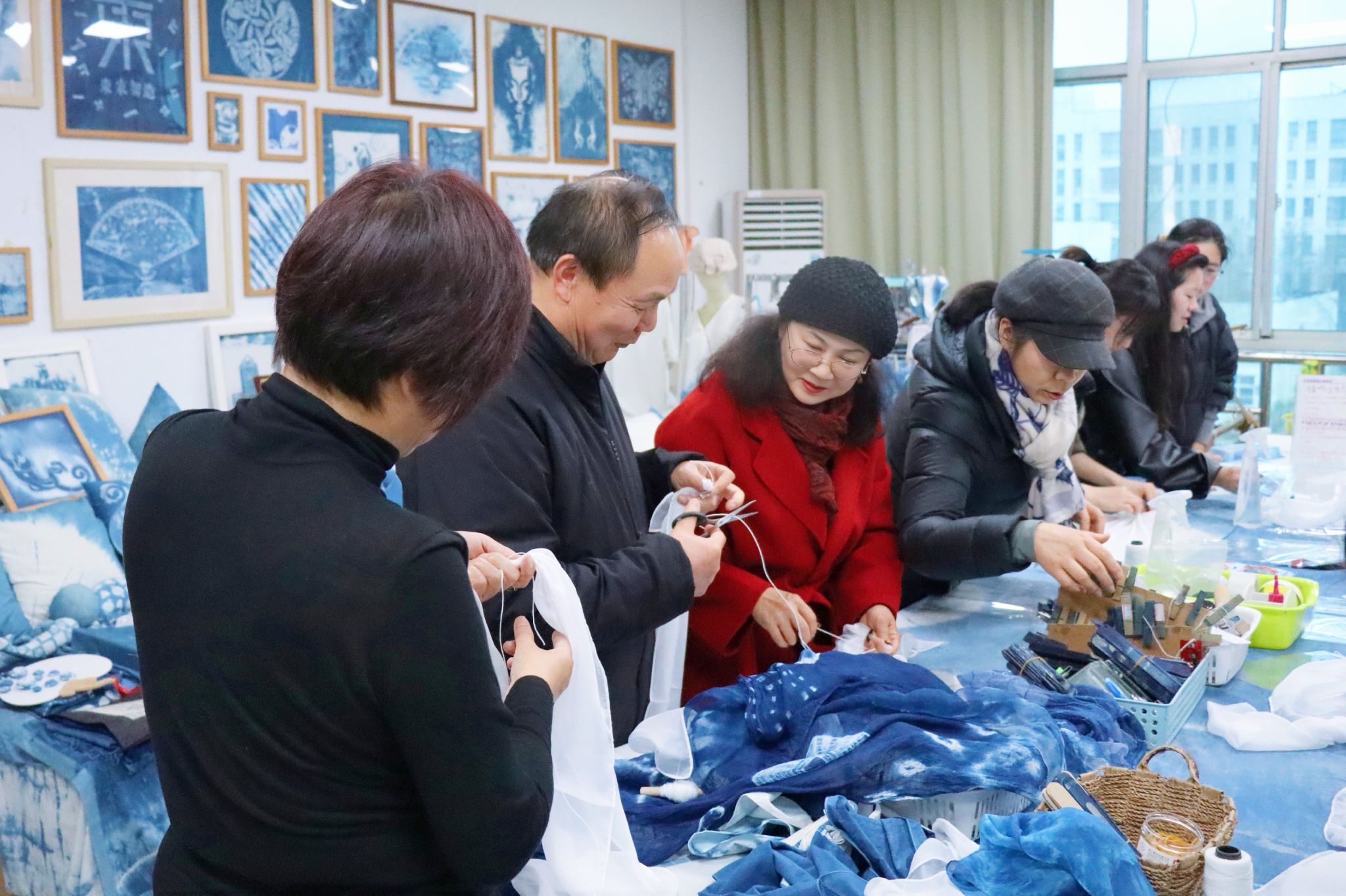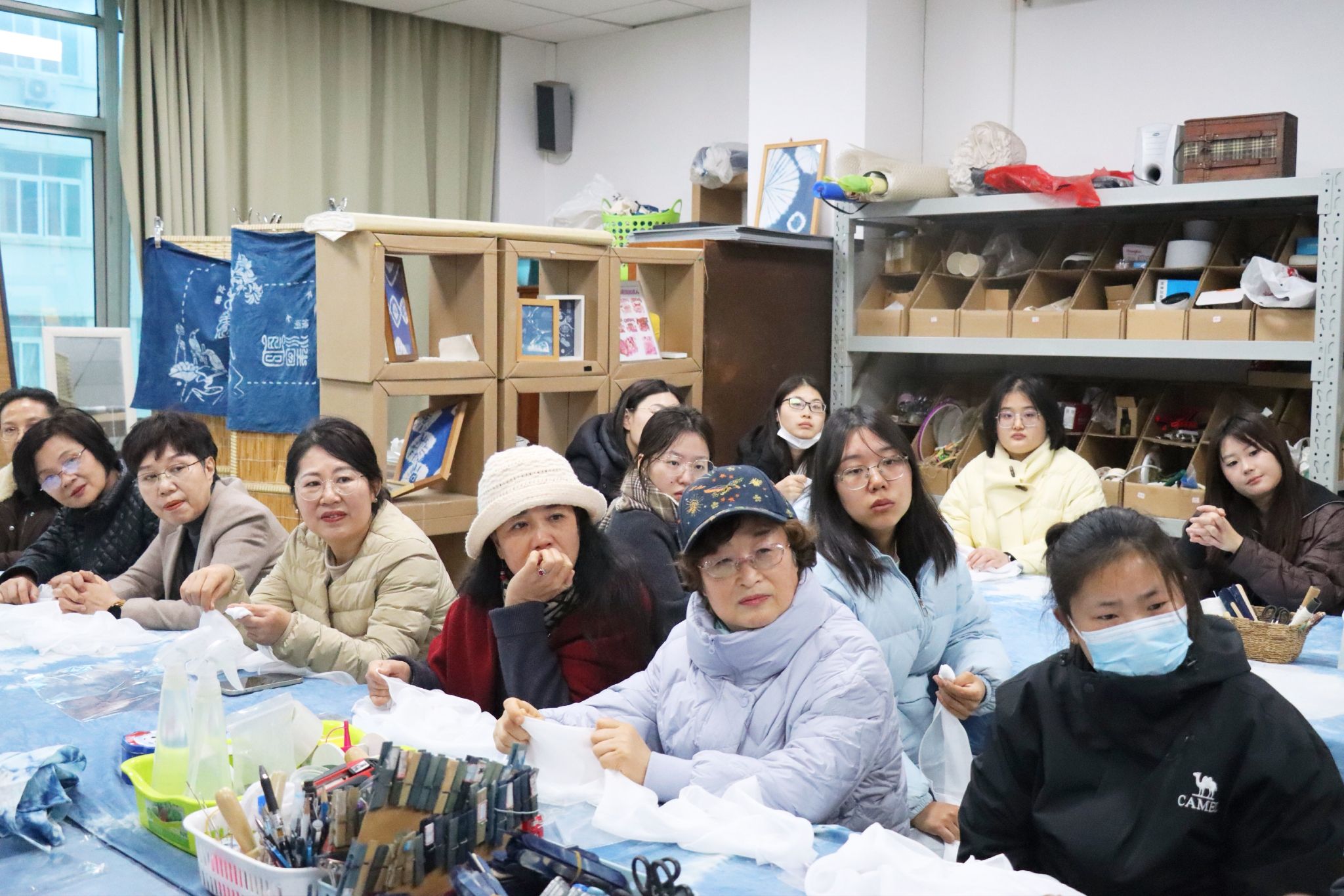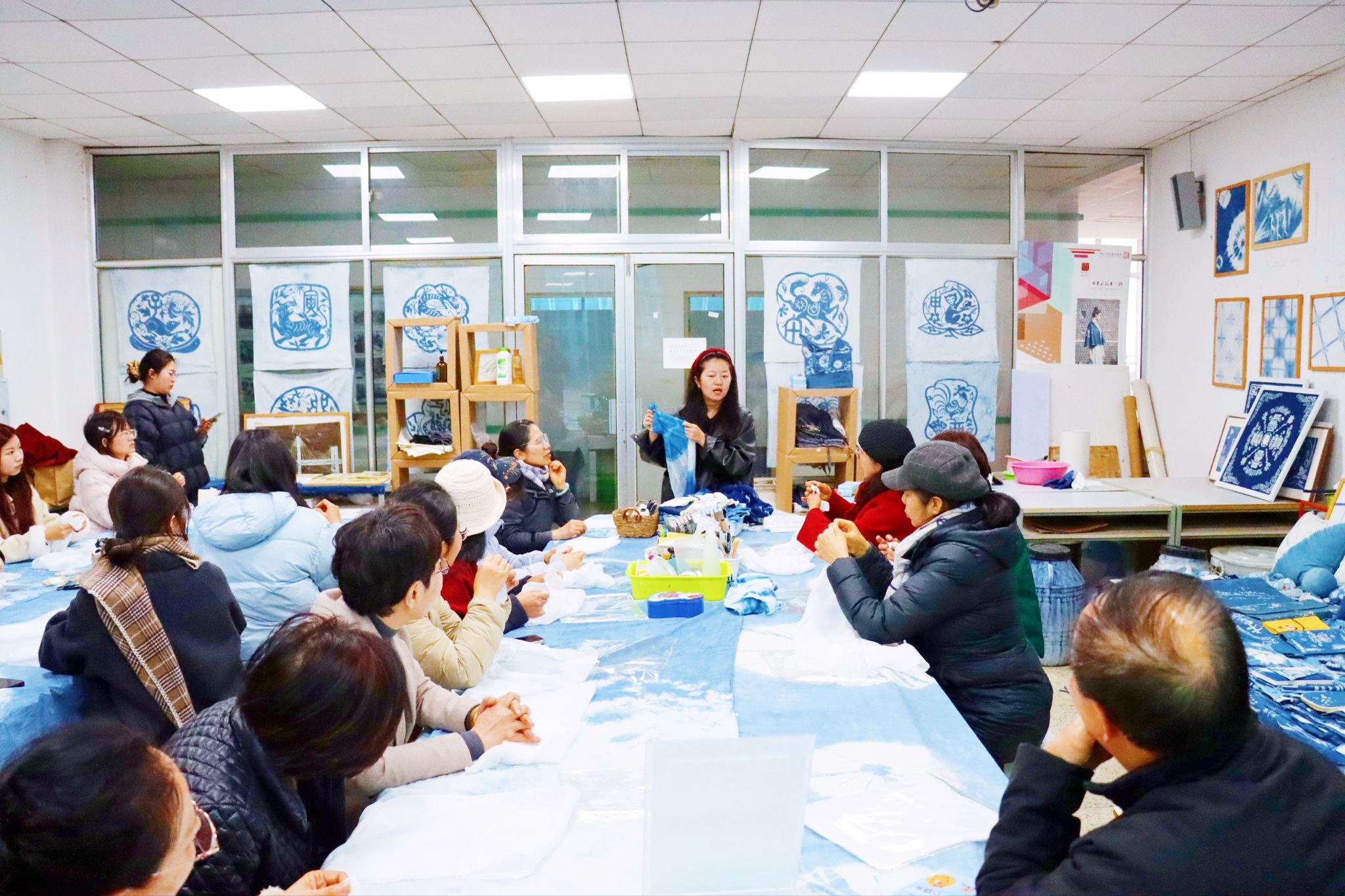 随后,大家移步蜡染工作室开展非遗体验。在冯震老师及其学生助手的指导下,师生们精心构思,体验蜡染制作工艺,一件件特色蜡染作品相继创作成型。活动中,师生共同感受传统非遗的文化魅力,在互动中舒缓身心、增进情谊。活动最后,大家展示蜡染作品并合影留念。