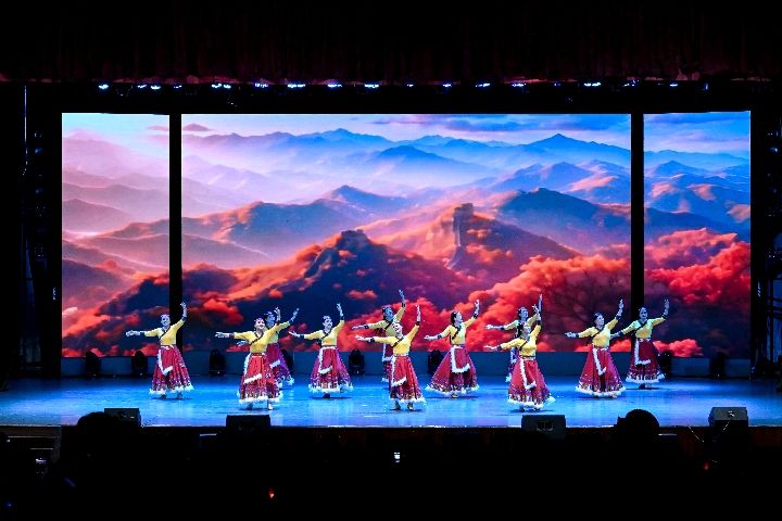 晚会上,乐器演奏、武术表演、川剧变脸、模特走秀、国风展示等节目轮番登场,传统韵味与青春风采交相辉映。老教师们表演舞蹈《再唱山歌给党听》,以优美的舞姿和饱满的精神,抒发爱党、爱国情怀,讴歌新时代新生活。