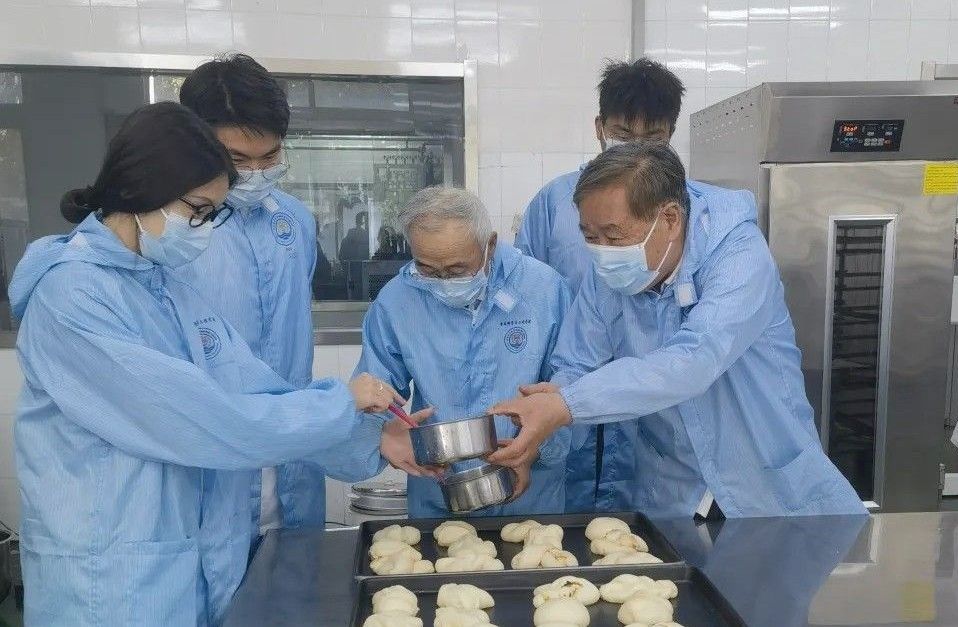 参加活动的师生参观了啤酒实训生产线、生物发酵生产线、烘焙食品实训室。在烘焙食品实训室,大家现场体验了面包烘焙,亲手制作面包,现场烤制。制作过程中,老同志们与学生亲切攀谈,分享实践操作的技术和注意事项,共享制作成果。
