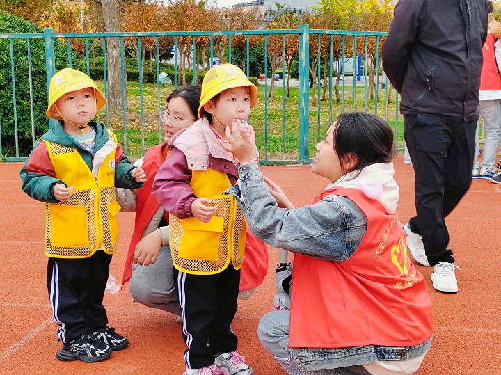 参观完海洋馆后,志愿者带着小朋友们在操场上奔跑、跳跃,玩起了接力赛、捉迷藏、老鹰捉小鸡等游戏。