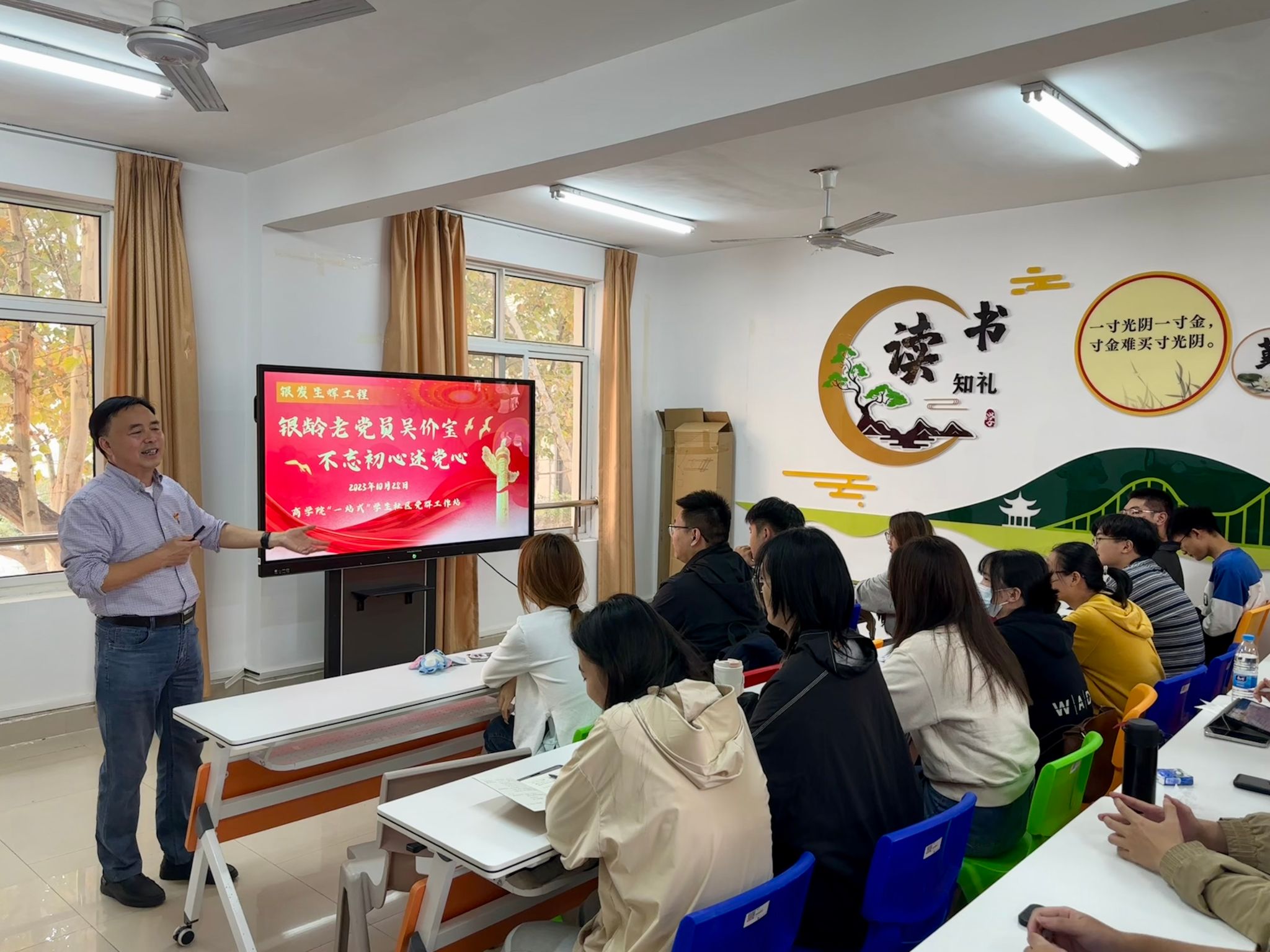 社区交流“情暖凝心”,共筑文化家园。商学院“一站式”学生社区,人文关怀四季长伴。夏日为考研学子鼓劲,冬日排查隐患、交流谈心,于寒暖交替间,师生情谊升温,凝筑温暖家园,润泽心灵。各学生党支部安排党员助理晨午晚全时段轮岗值班,朝朝暮暮,未曾间断,为同学们解疑答惑、提供帮助,以实际行动彰显担当,传递温暖与力量。