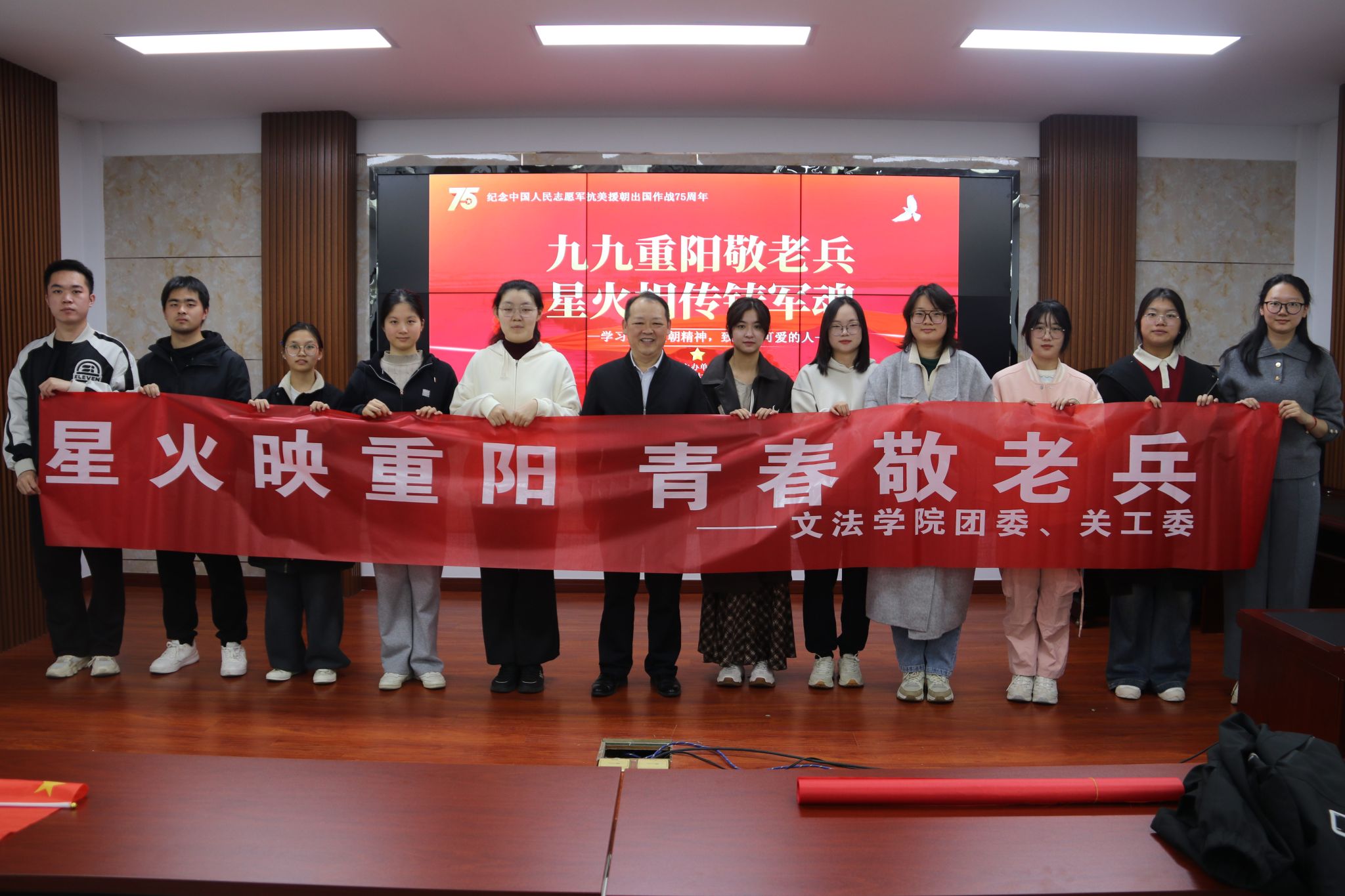 重阳敬老情,薪火永相传。10月25日上午,文法学院关工委联合连云港市文化馆、连云港市军休中心等单位,开展“九九重阳敬老兵星火相传铸军魂”主题活动,以实际行动弘扬尊老敬老传统美德,传承红色基因。青年大学生和“星火儿童团”代表共70余人与抗美援朝老兵展开一场跨越时空的深度对话。