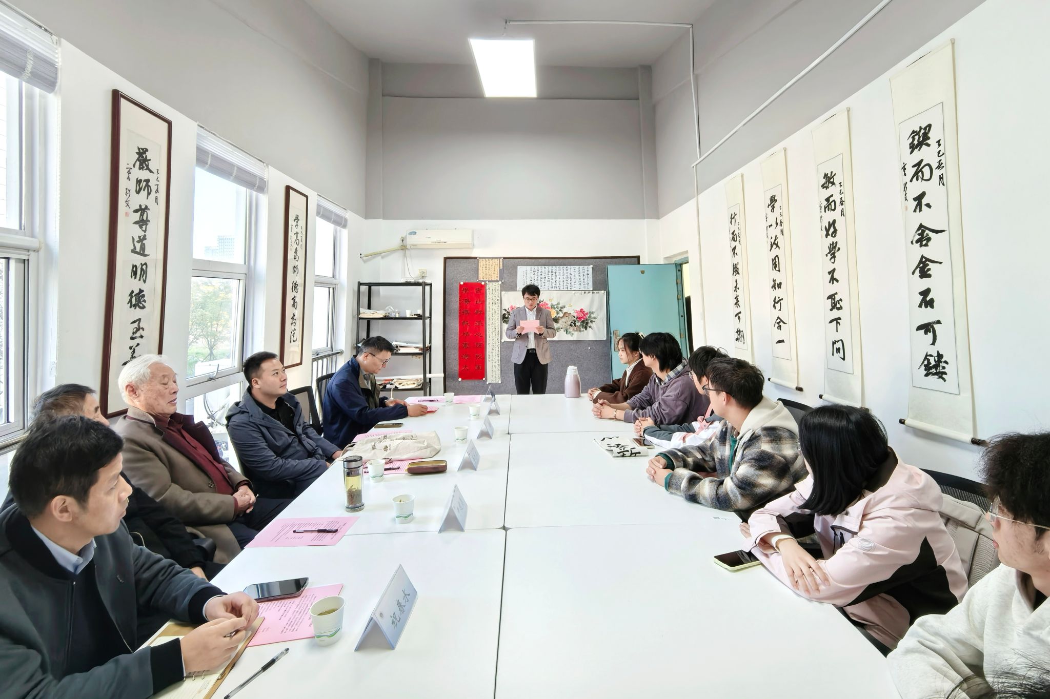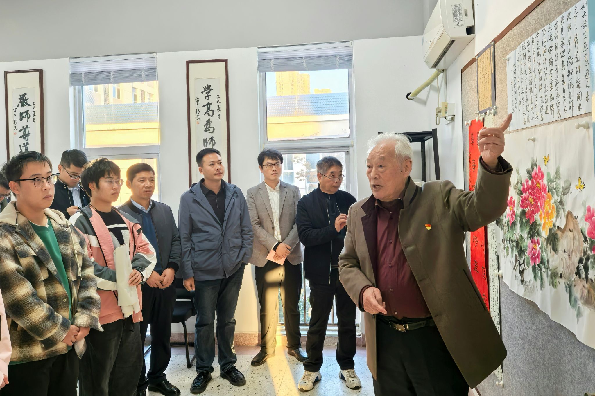 为深入贯彻落实习近平总书记关于学校美育工作的重要指示精神,促进中华优秀传统文化与高校美育深度融合,11月5日,商学院关工委在“一站式”学生社区“逸心堂”辅导员美育工作室举办“笔墨绘校,美育同行”书画鉴赏会,邀请江苏国画特聘书法师董立业、高级政工师于建春2位退休教师参加,商学院党委副书记兼关工委副主任王智金主持活动。