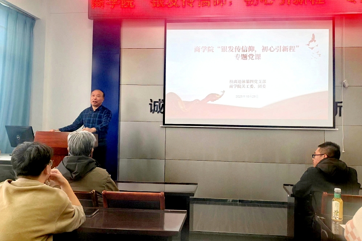 10月29日,离退休党委第四党支部深入结对共建的商学院,参与学院党委举办的入党积极分子培训,老党员们和学生入党积极分子共同聆听了支部老党员、商学院关工委常务副主任徐永其教授主讲的“银发传信仰,初心引新程”专题党课。