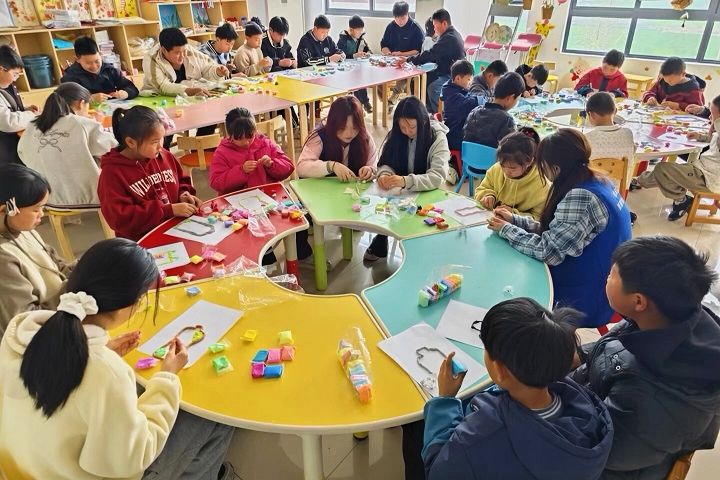 在太平村社区,志愿者们开展“情绪魔法瓶 点亮好心情”主题活动。以生动易懂的语言为小朋友们讲解不同情绪的特点,通过趣味提问引导孩子们主动分享自己的喜怒哀乐,帮助孩子们正确认识情绪、表达情绪。以手工制作活动,帮助他们将自己的情绪通过色彩搭配和造型设计融入黏土创作中,将抽象的情绪转化为具象的“情绪魔法瓶”。