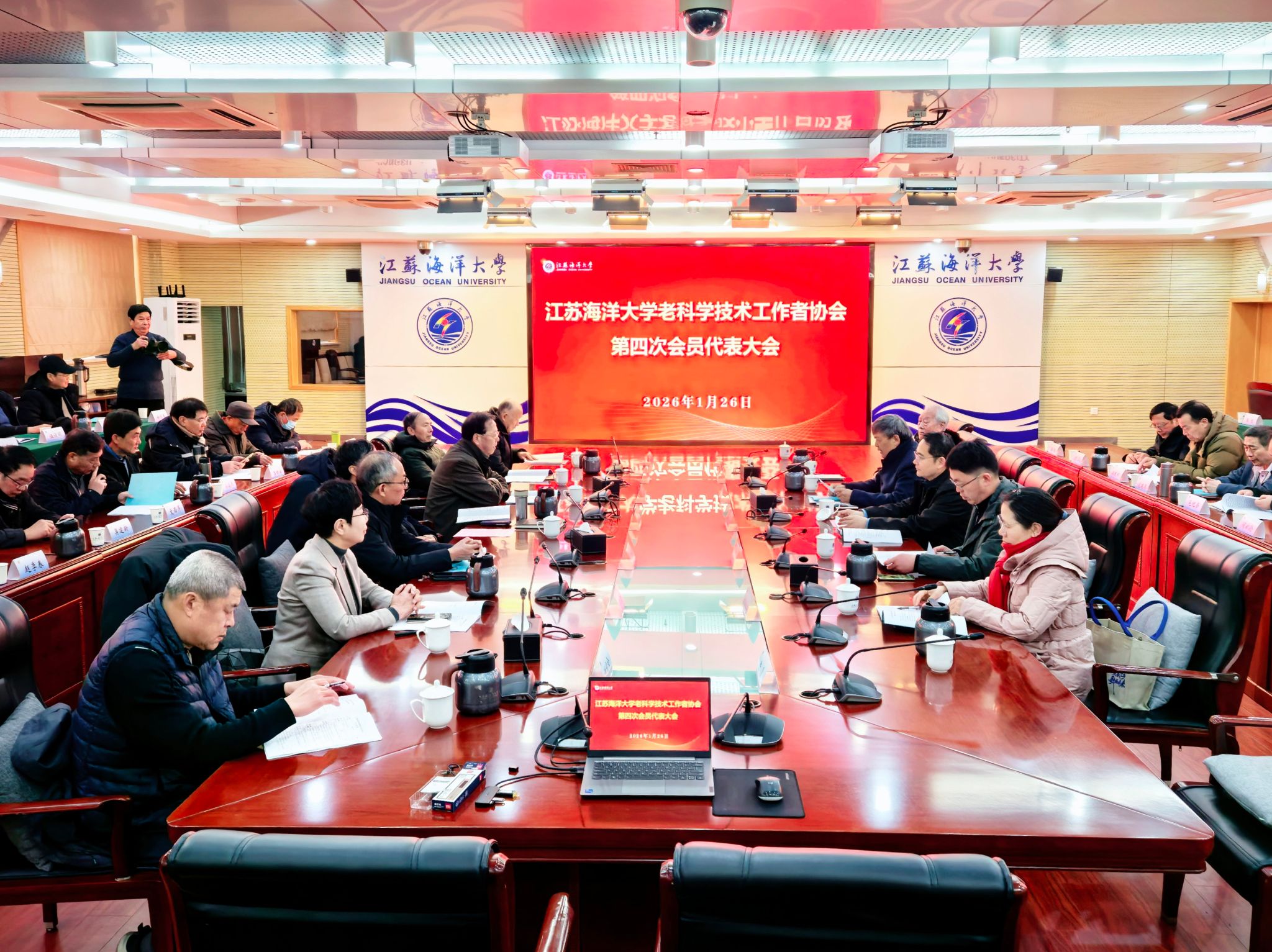 1月26日,我校老科技工作者协会第四次会员代表大会在校会议中心东海厅举行。连云港市老科协会长董春科、副会长张红雨、常务理事葛百权、监事长张建民等应邀出席。校党委常委、副校长申欣以及校科技处领导、老科技工作者协会会员代表共60人参加会议。上届老科技工作者协会会长刘平昌主持会议。
